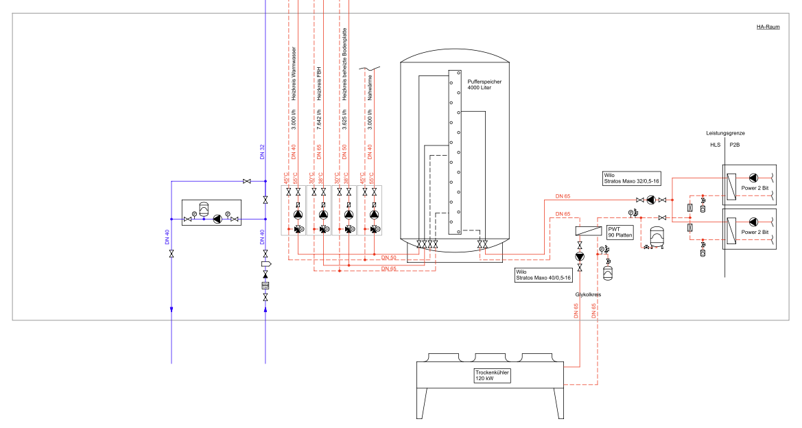 Diese Anlage wird künftig Heizlasten von bis zu 120 kW und mehr abdecken. Ein Pufferspeicher dient zur Unterstützung. Außerdem kann die Anlage im Sommer über einen Trockenkühler betrieben werden. In Zeiten mit geringerem Wärmebedarf – etwa im Sommer – kann sie dennoch flexibel ein- und ausgeschaltet werden, um das Stromnetz zumindest teilweise zu entlasten.